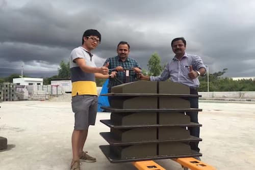 En julio de 2010, un cliente nos contactó para adquirir una máquina para fabricar ladrillos macizos de ceniza volante en Bangalore. El cliente visitó nuestra fábrica y comprobó el funcionamiento de la planta, y consideró que la QT4-15 con un tamaño de palé de 980*560 era adecuada para su producción.